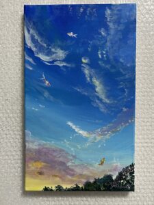 青系統は気持ちが落ち着き心穏やかにする効果があります、空や海の景色もよいでしょう。空の絵は、季節や時間によって青、黄、オレンジ、白といった美しいグラデーションで描かれることが多く、絵を見た時の日々の自分の気持ちのグラデーションに寄り添ってくれるのでお勧めです。